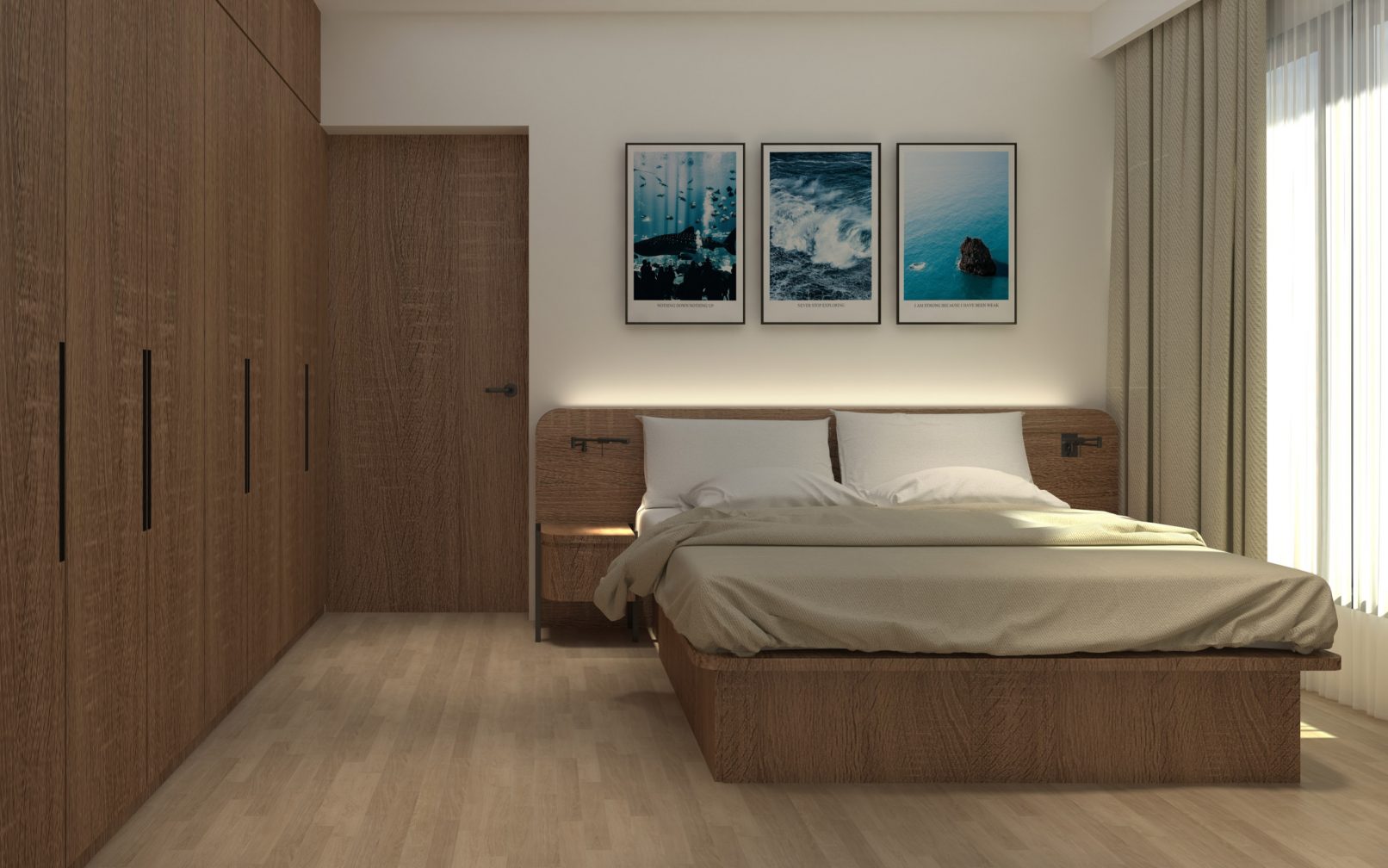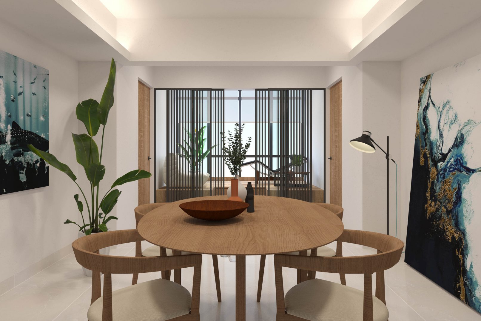 The team transformed the 40 year old run down flat into a modern home, with ample of storage spaces. The light coloured beauty of marble flooring is highlighted by opting for furniture and carpentry in a contrasting colour and materials. It is also complemented by using marble-like quartz in the kitchen to match the floor for cohesion..