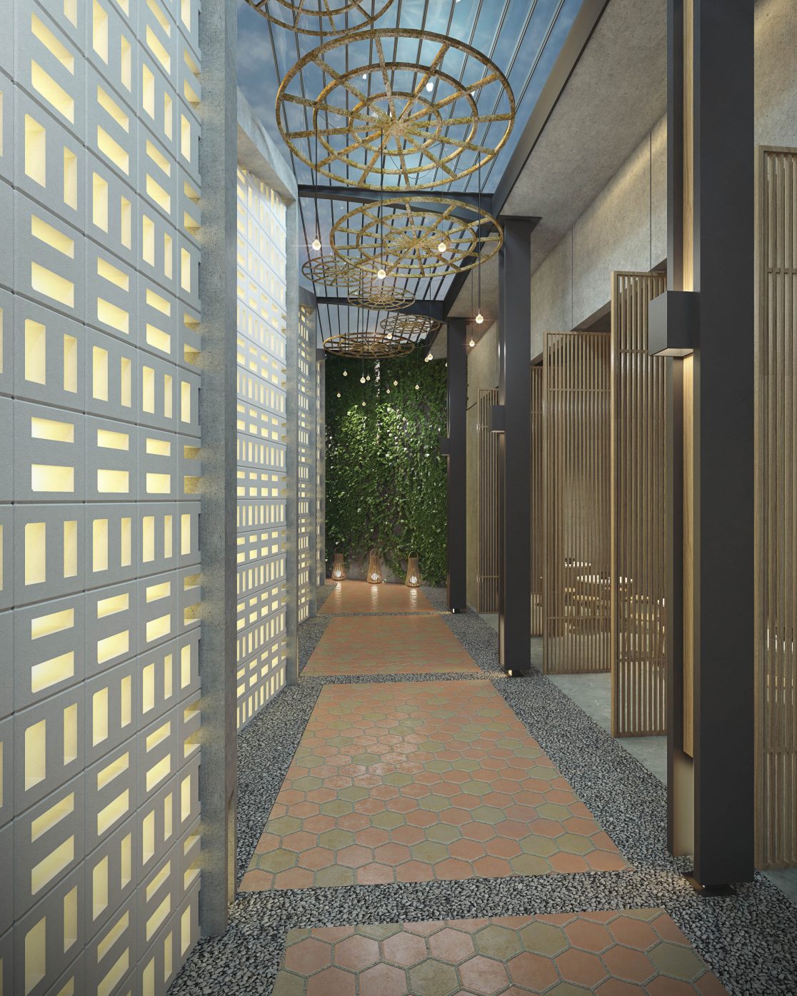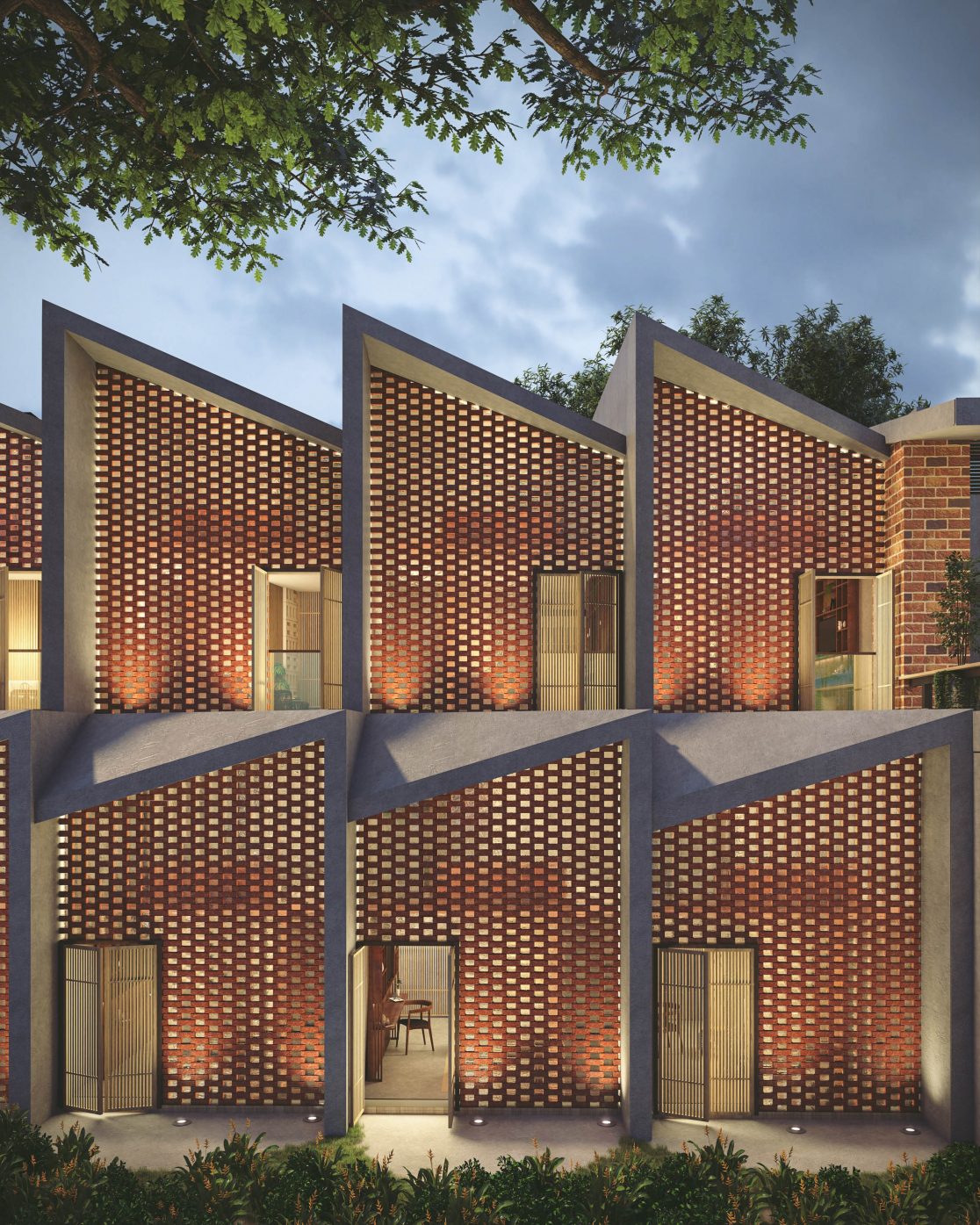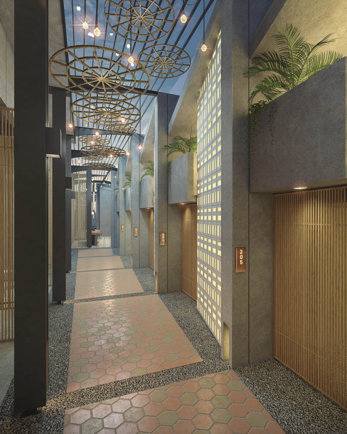 Nestled within a busy central business district, the team was asked to develop a proposal for a boutique hotel on a uniquely shaped site. With steep terrain and a thin trapezoidal planning area, the proposal was limited by conservation guidelines, varying height restrictions, and other planning regulations. The team opted to work with the randomness of the requirements by terracing each guest suite and creating an interesting elevation that responded to the hilly topography. An architectural style that embraces a strong local traditional influence was also adopted to complement the urban language of the shop houses dominating the surrounding areas. The corridor spaces were envisioned as intimate alleyways, allowing each suite to have its own balcony overlooking the passage, evoking the character of the neighborhood’s historic past before rapid urbanization.