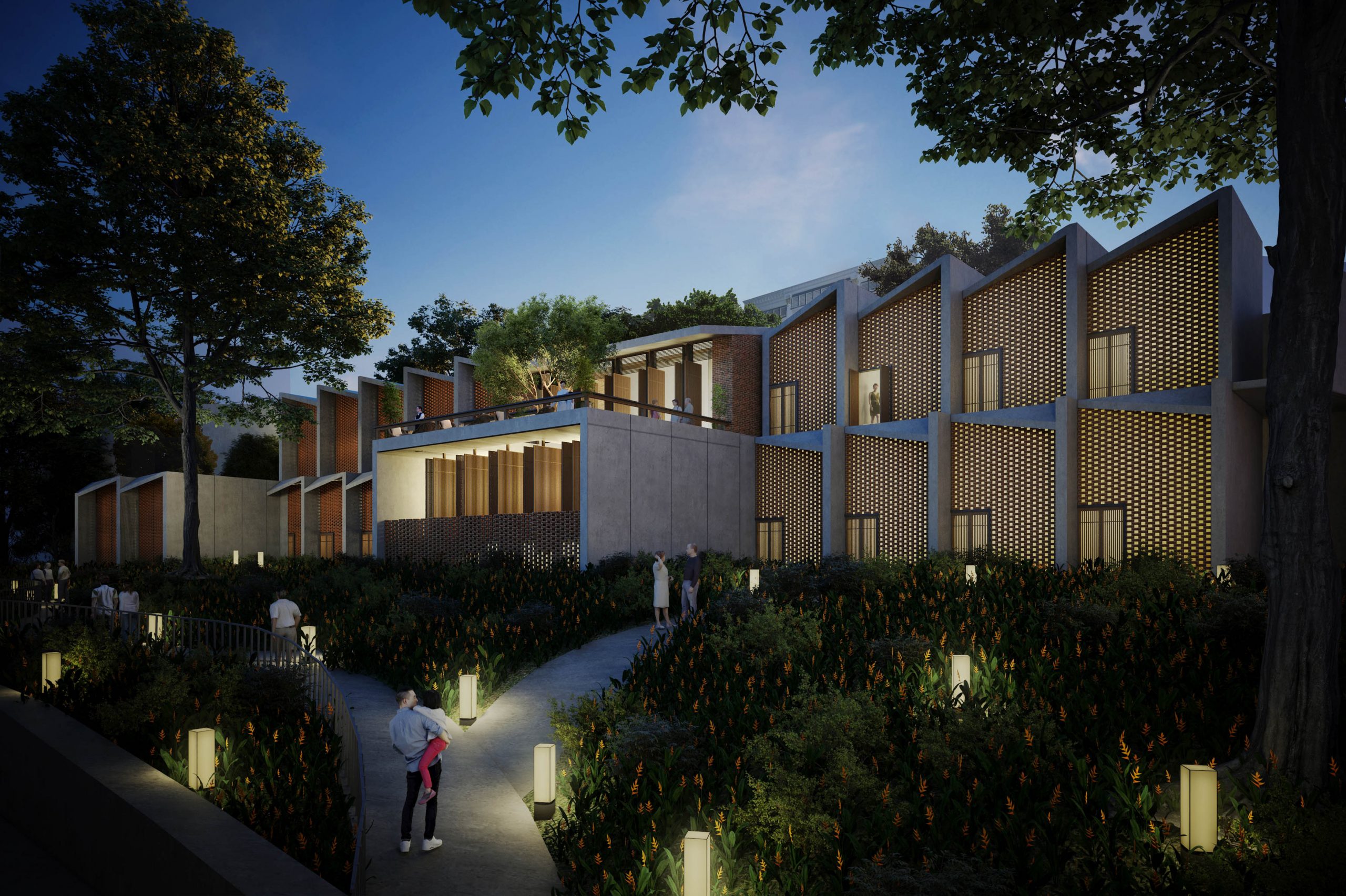 Nestled within a busy central business district, the team was asked to develop a proposal for a boutique hotel on a uniquely shaped site. With steep terrain and a thin trapezoidal planning area, the proposal was limited by conservation guidelines, varying height restrictions, and other planning regulations. The team opted to work with the randomness of the requirements by terracing each guest suite and creating an interesting elevation that responded to the hilly topography. An architectural style that embraces a strong local traditional influence was also adopted to complement the urban language of the shop houses dominating the surrounding areas. The corridor spaces were envisioned as intimate alleyways, allowing each suite to have its own balcony overlooking the passage, evoking the character of the neighborhood’s historic past before rapid urbanization.